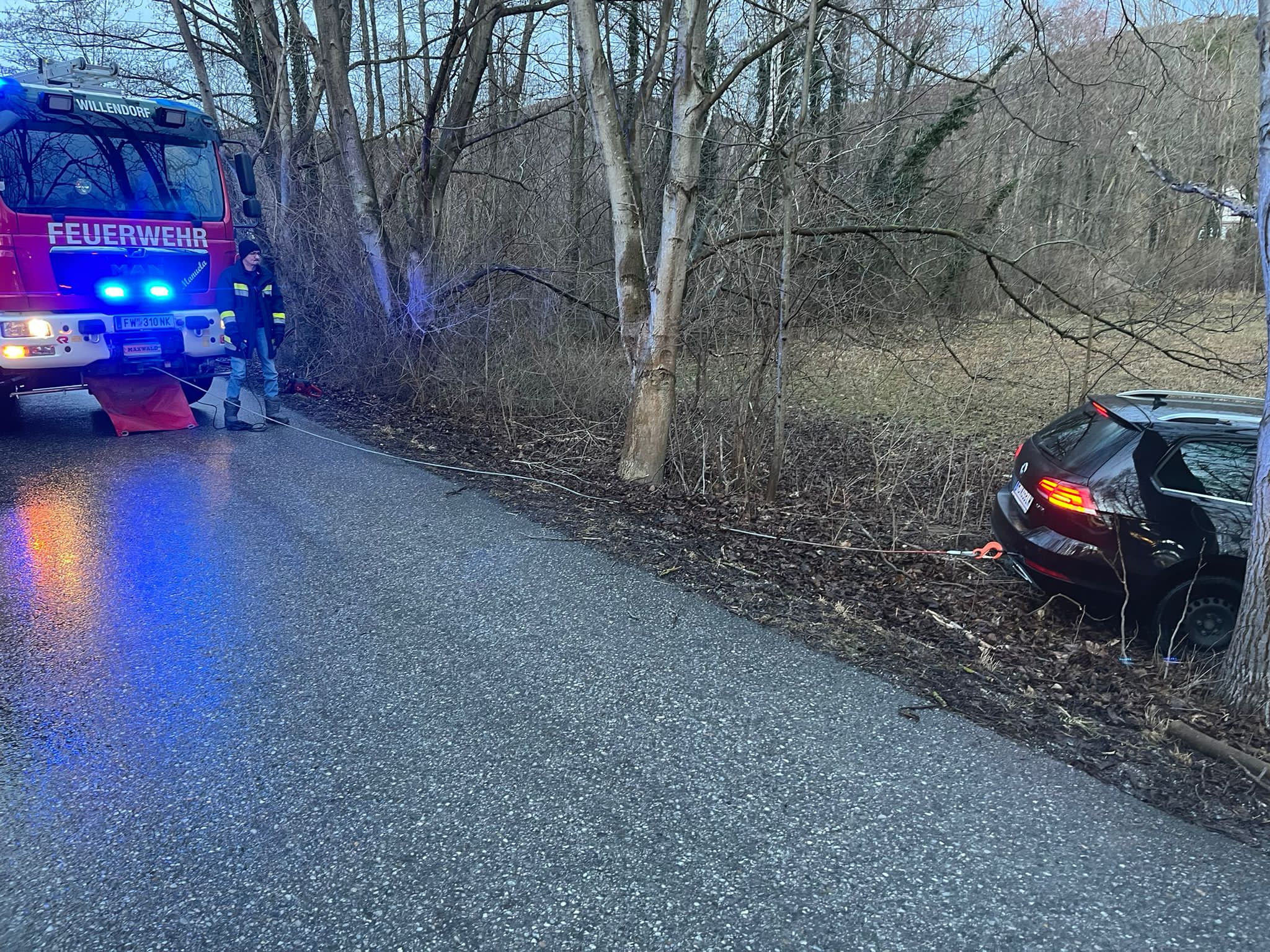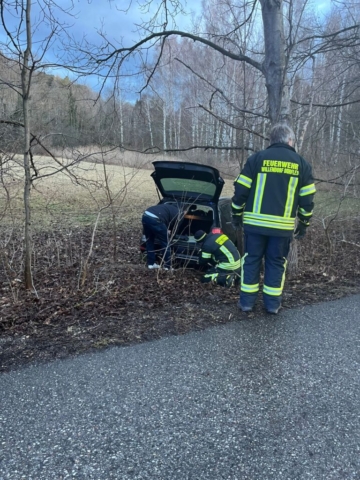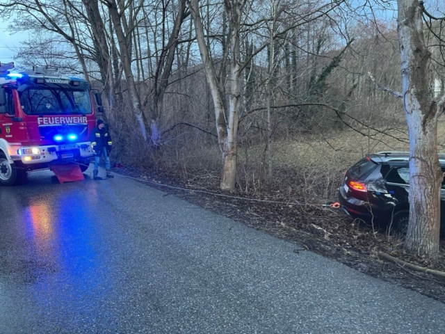 Aufgrund des Eisregens in den Morgenstunden und der dadurch entstandenen Straßenglätte kam ein Fahrzeuglenker von der Straße ab. Das Fahrzeug blieb im Straßengraben hängen. Der Fahrzeuginsasse hatte großes Glück, denn er konnte „Gott sei Dank“ den Bäumen ausweichen und blieb so unverletzt. Da der PKW fahrbereit blieb, konnte der Lenker sein Fahrzeug unter Anleitung der Einsatzkräfte über eine Wiese wieder zurück auf die Straße fahren.